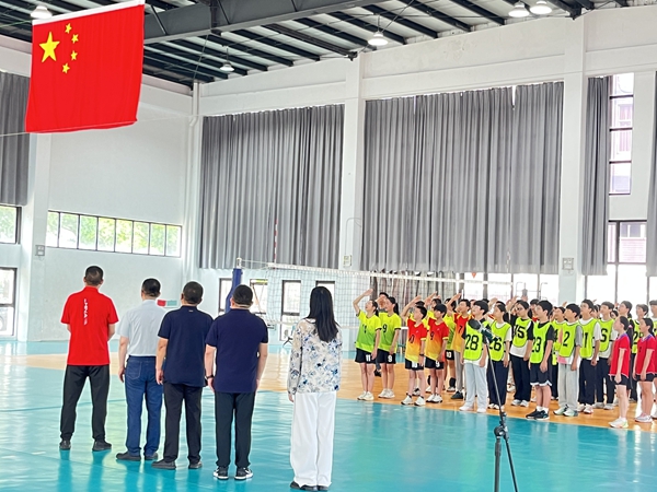 开幕式上,徐文明校长携常州华森医疗器械股份有限公司办公室主任方建峰、武进区教育局基教科副科长陆琪、武进区文体广电和旅游局副科长王礼千、武进区教育局体卫艺专干黄文娟,以及参赛队伍有关领导、教练员共同出席。国歌奏响后,各校代表队身着鲜明队服亮相赛场。比赛中,选手们以精准发球、强势扣杀展现竞技风采,教练团队实时调整战术,裁判组全程严谨执裁,现场观众喝彩声此起彼伏。